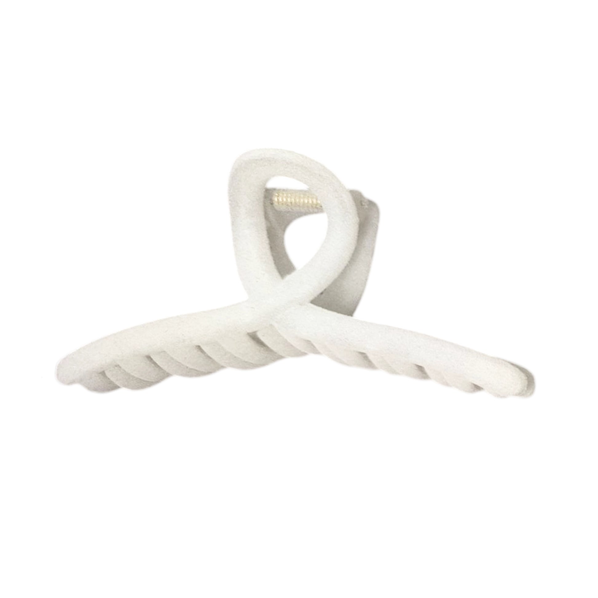 Pinza cruzada grande de terciopelo, ideal para sujetar el cabello con firmeza y estilo. Diseño elegante, suave al tacto y disponible en colores modernos.